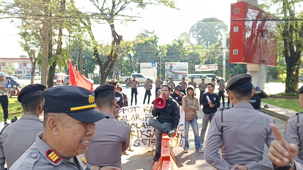 rodanewsindonesia – Beberapa pemuda dan mahasiswa melakukan unjuk rasa di depan Kantor Polda Sulawesi Selatan, Kota Makassar, Senin, (16/6/2025).