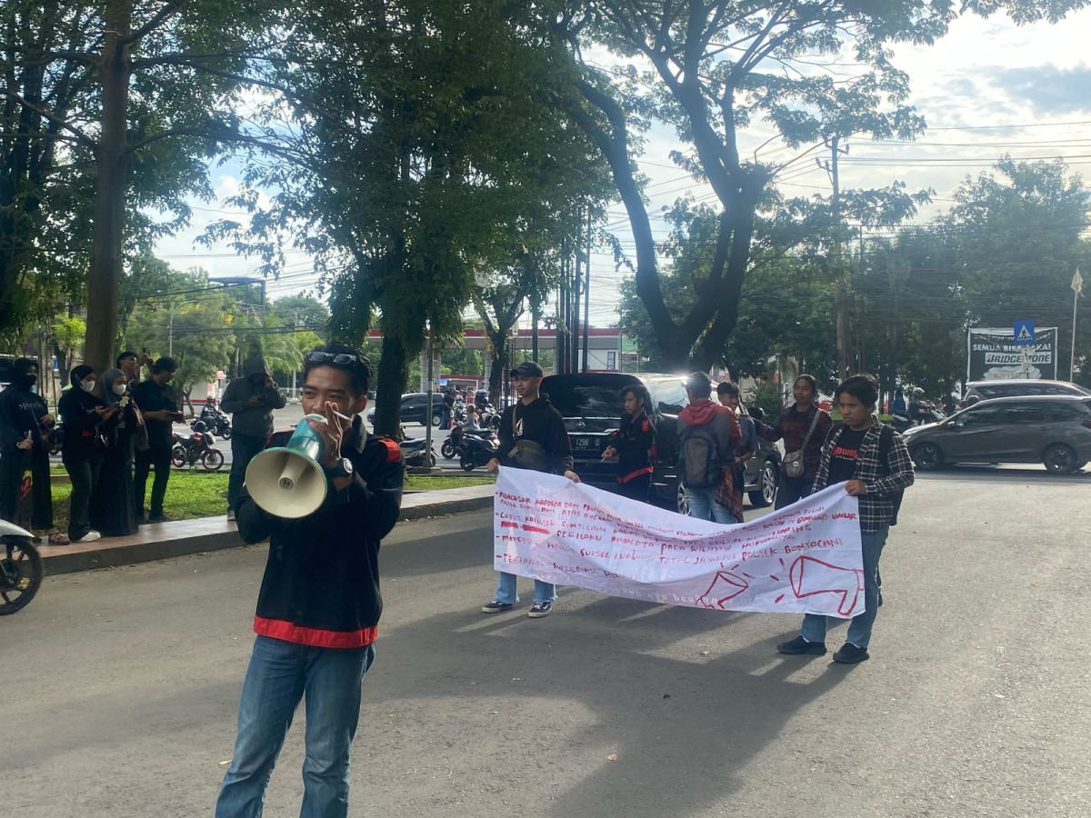 rodanewsindonesia – Puluhan Mahasiswa dan Pemuda Kec. Bontocani, Kab. Bone, yang tergabung dalam Aliansi Pemuda dan Mahasiswa lakukan aksi Demonstrasi di depan Mapolda Sul-Sel terkait dengan tindak Asusila yang dilakukan oleh salah satu Oknum Polisi berpangkat Bripda yang berinisial MNF (23), kepada anak di bawah umur, Rabu (30/4/2025)